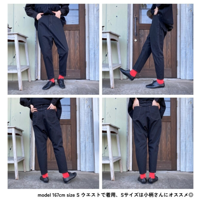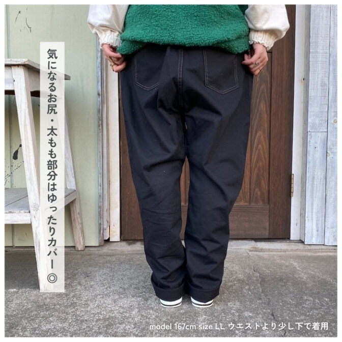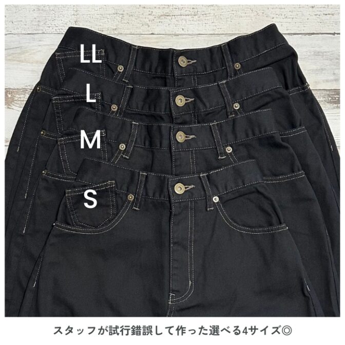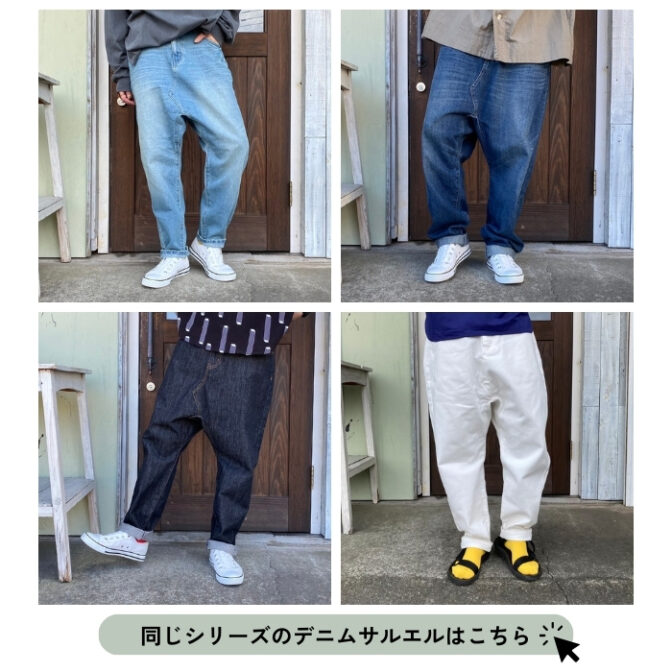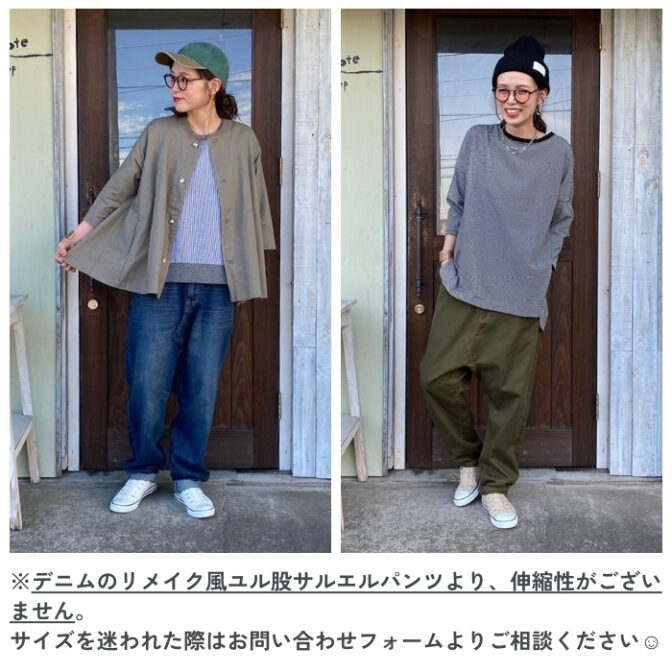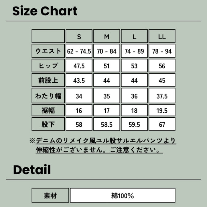 S M L LL ※デニムのリメイク風ユル股サルエルパンツより、伸縮性がございません。 |