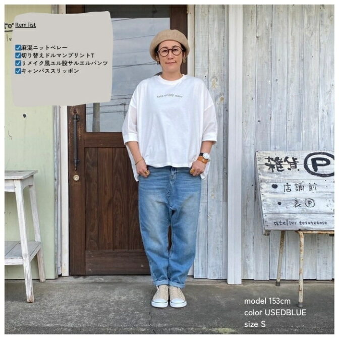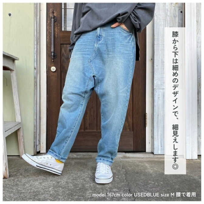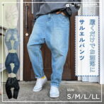 リメイク風ユル股サルエルパンツ サルエルパンツ 大人 サルエル 楽チン デニム レディース S~2L