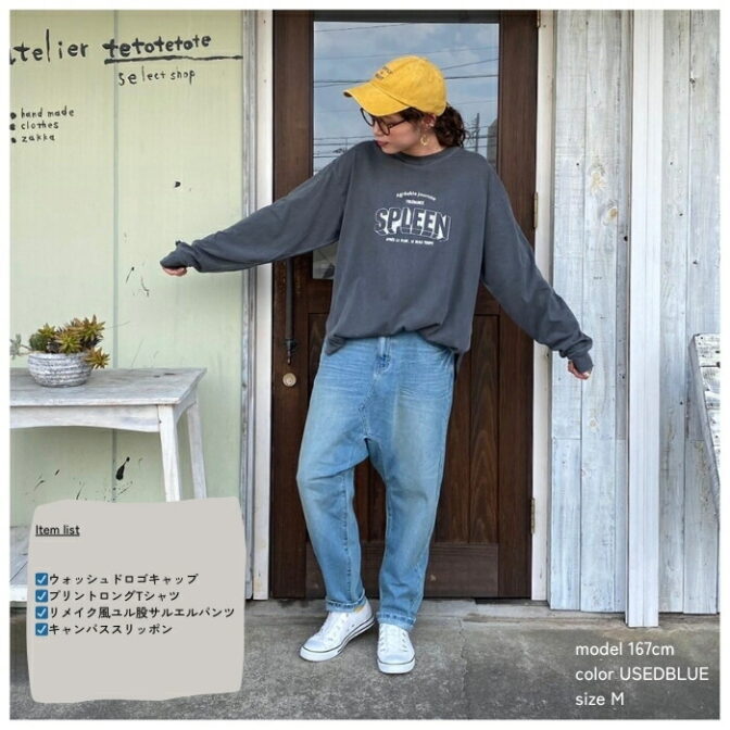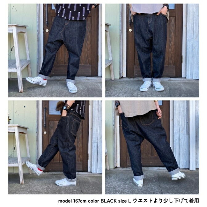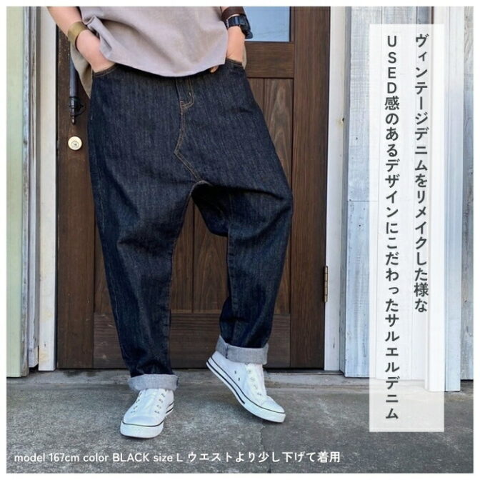 | 特徴 | S M L LL 4サイズ展開 colorもブラック、ホワイトを加え4colorに◎ まるでビンテージデニムをリメイクしたかのようなデザインとカラーのサルエルパンツ。 加工感にもこだわった納得して頂けるデニムです。 さらにゆる股のサルエルに仕上げる事で、よりカジュアルに穿いて頂く事が出来ます。 ウエストは後ろがゴム仕様になっていて、とても履きやすいです。 |